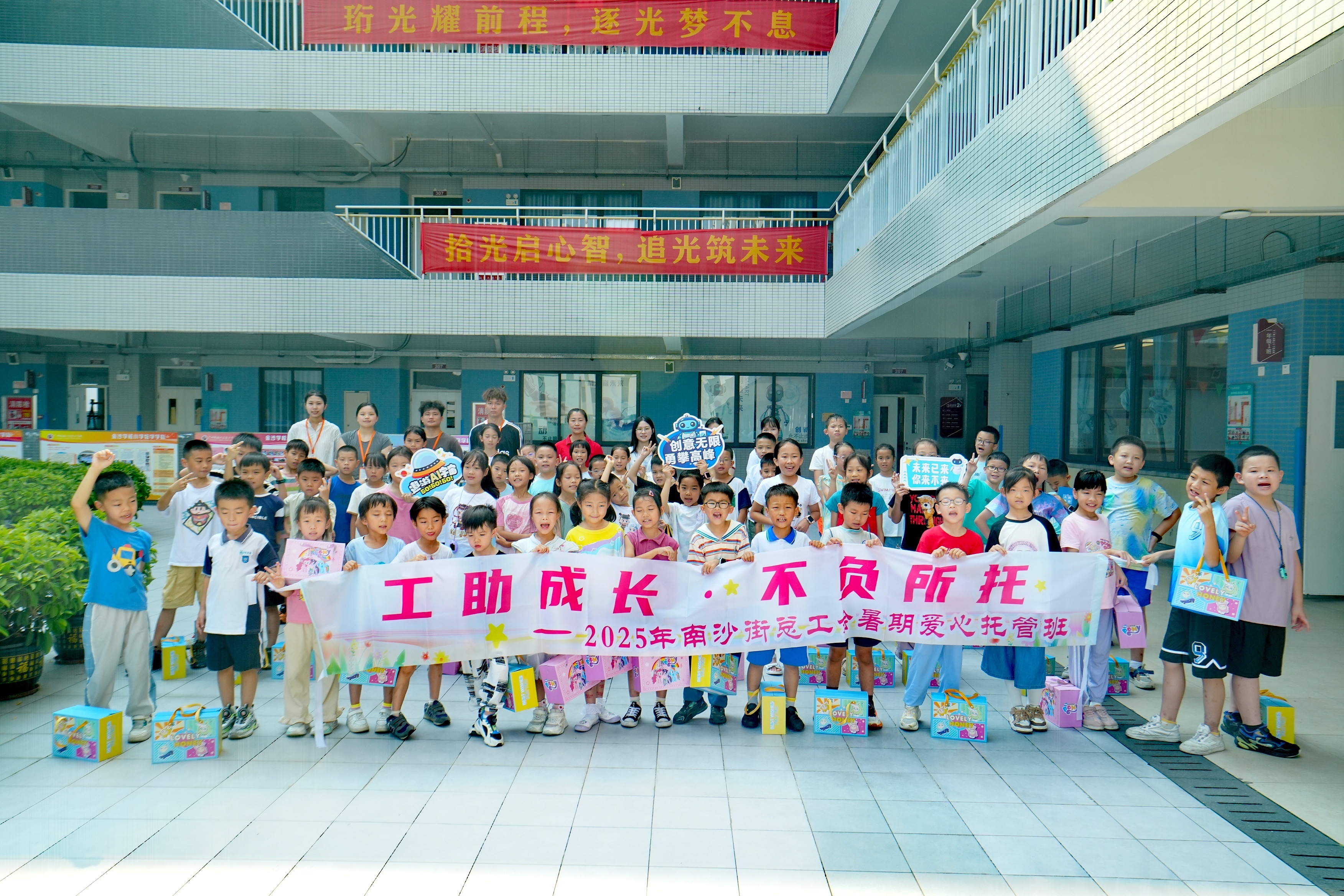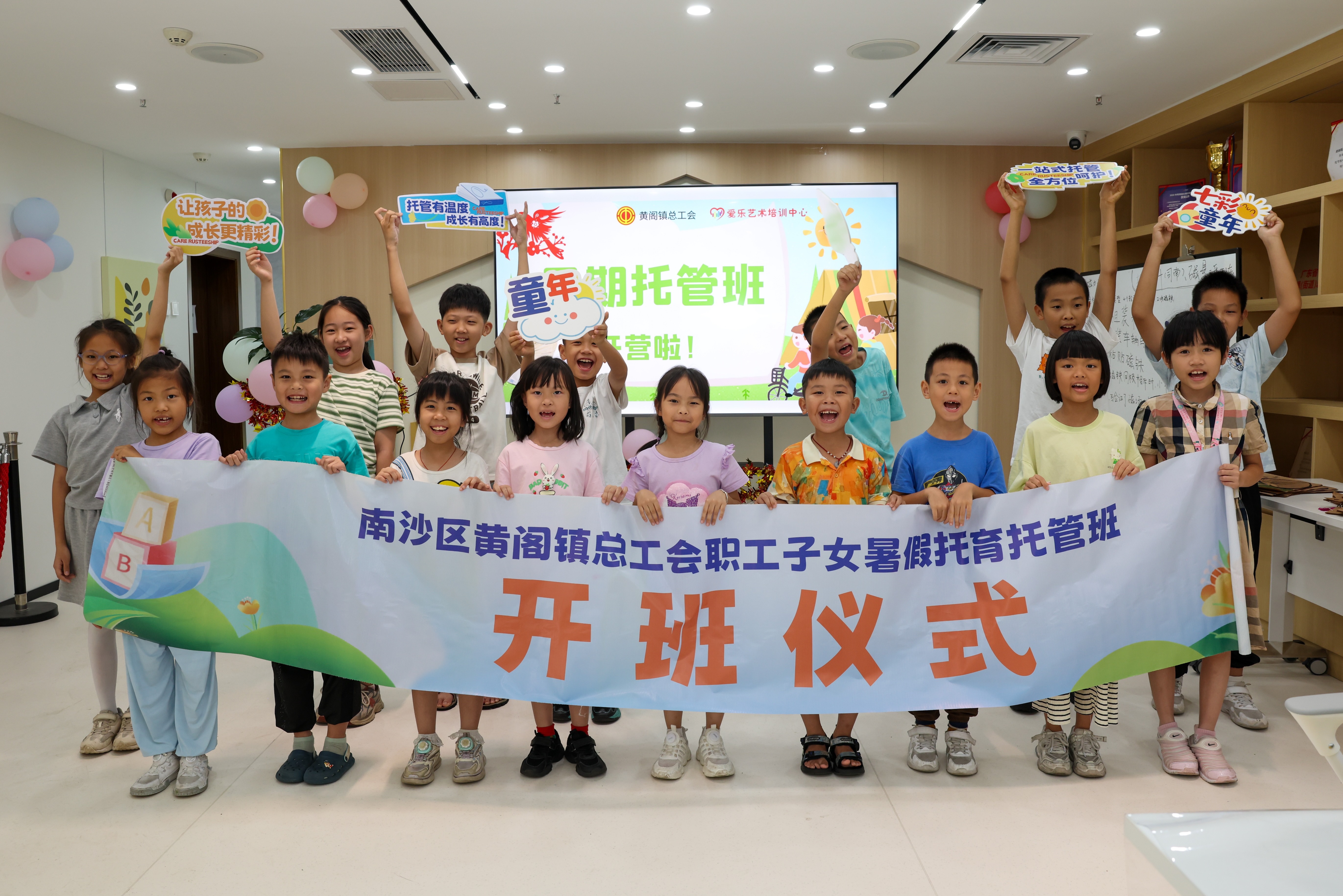 在此背景下,2025年暑假,南沙区总工会统筹全区镇(街)总工会、区属国企、党政机关、学校、企业,将职工子女托管服务融入“15分钟生活圈”中,通过专项经费补助、资源整合及服务标准化建设,打造“工会主导、专业运营、多元参与”的特色模式,让职工在“家门口”找到子女安全、优质的托管场所,解决暑假“带娃难”问题,以工会温度护航职工子女的缤纷暑假。