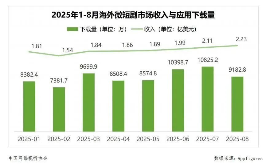 《中国微短剧行业发展白皮书(2025)》数据显示,2025年1月至8月,海外微短剧市场总收入达15.25亿美元,同比激增194.9%。海外微短剧应用总下载量7.3亿次,同比增长370.4%。ReelShort、DramaBox两大头部平台单季收入均破1亿美元,昆仑万维(维权)DramaWave年化流水破2.4亿美元。收入前20位的应用中,90%具有中国背景,创造了91%的市场收入。